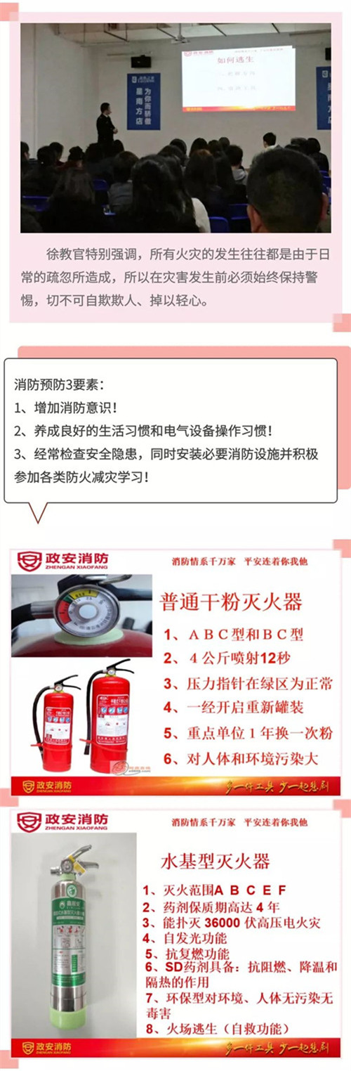火災(zāi)在各類(lèi)災(zāi)情中最為常見(jiàn)和多發(fā),此次培訓(xùn)徐教官主要就火災(zāi)預(yù)防及逃生相關(guān)知識(shí)進(jìn)行了全面的講解。